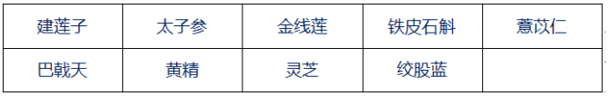鐵皮石斛、衢枳殼、烏藥、三葉青、覆盆子、前胡、靈芝、西紅花
