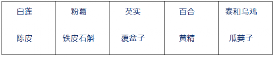 浙貝母、白術(shù)、元胡、玄參、杭白芍、杭白菊、浙麥冬、溫郁金