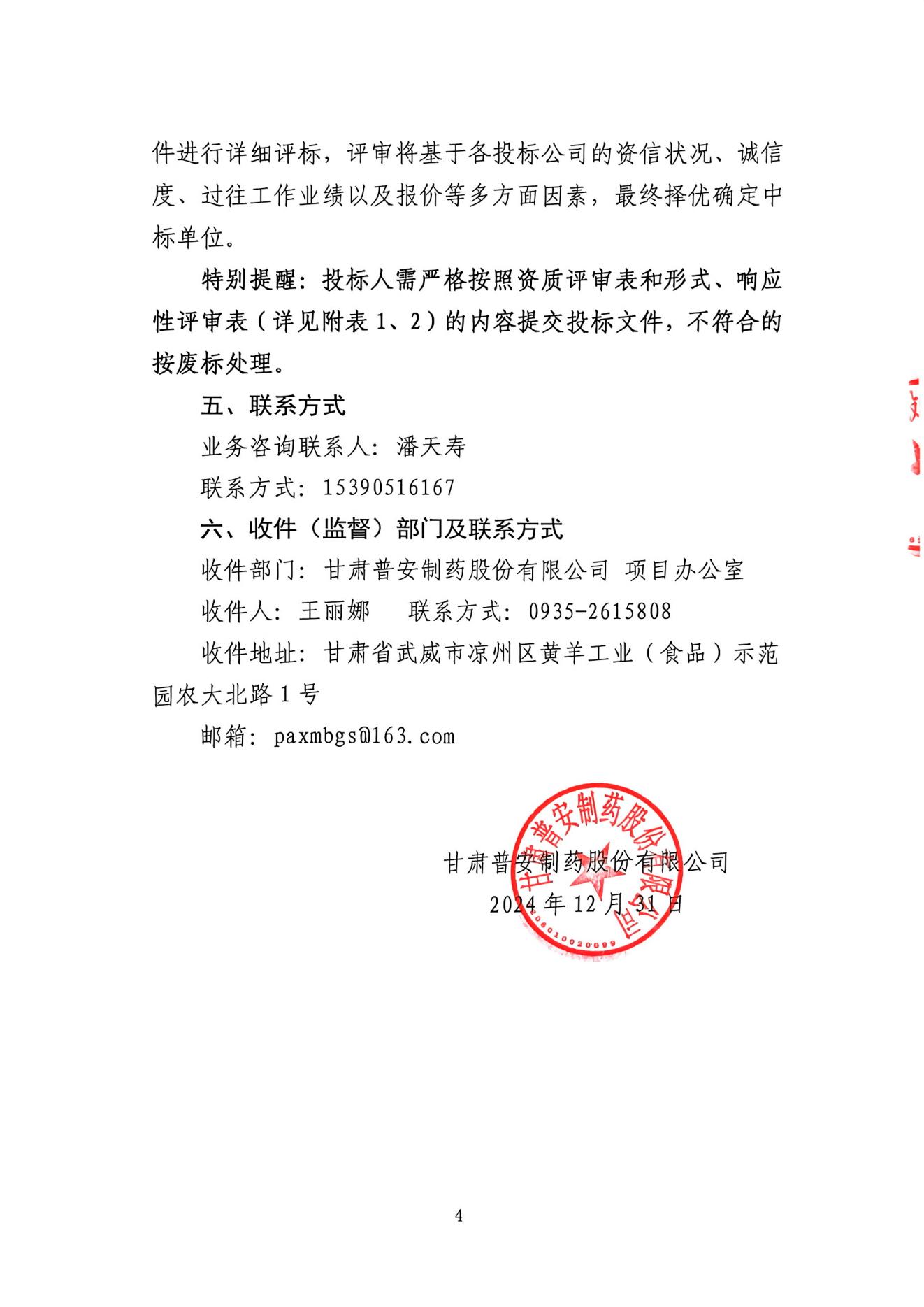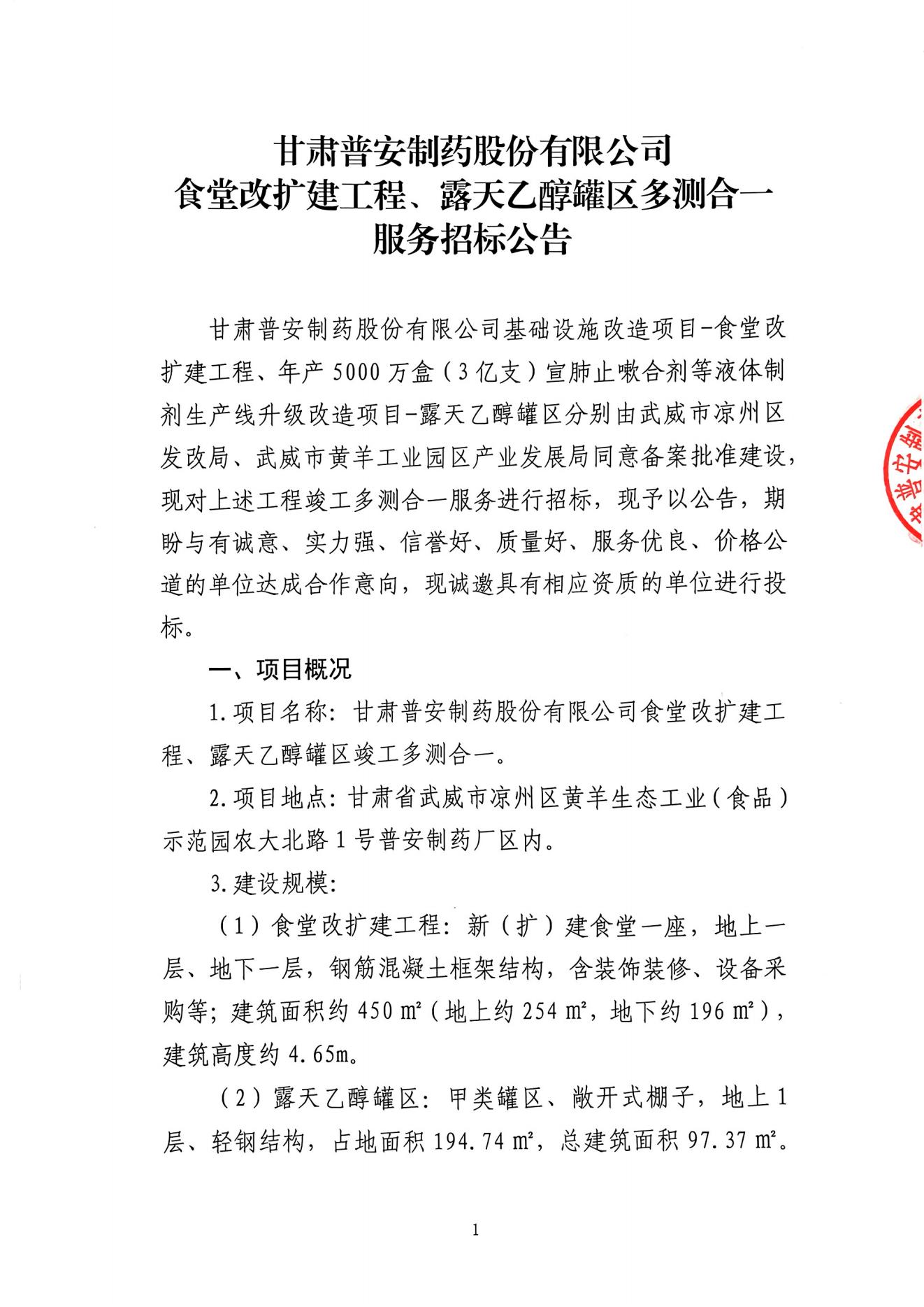 甘肅普安制藥股份有限公司食堂改擴建工程、露天乙醇罐區多測合一服務招標公告