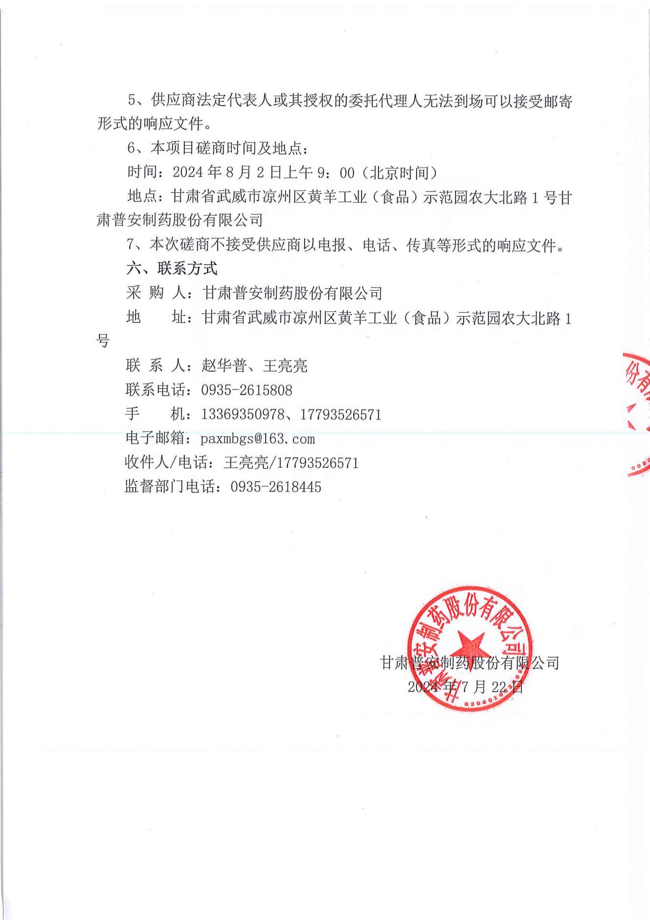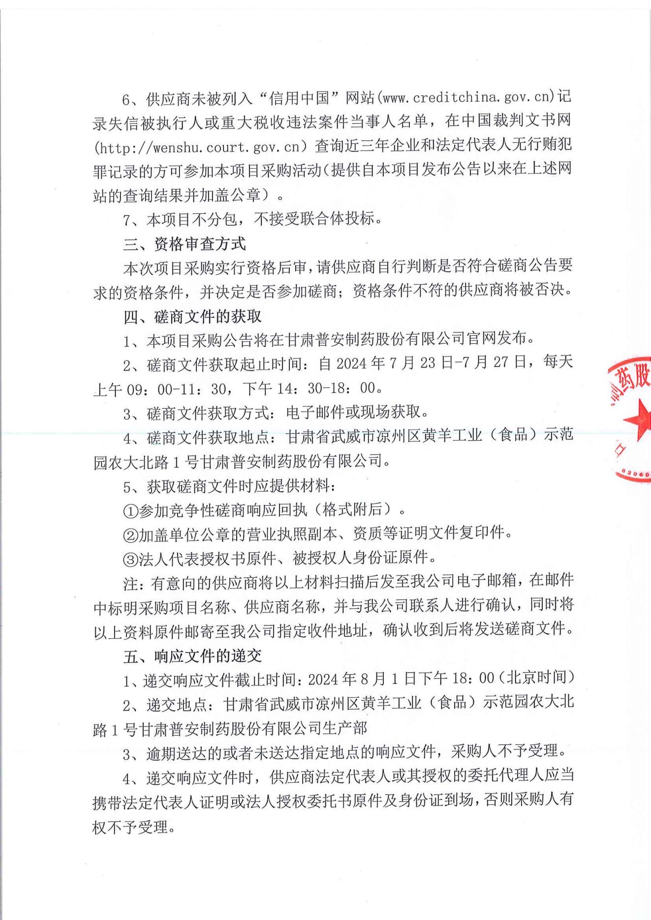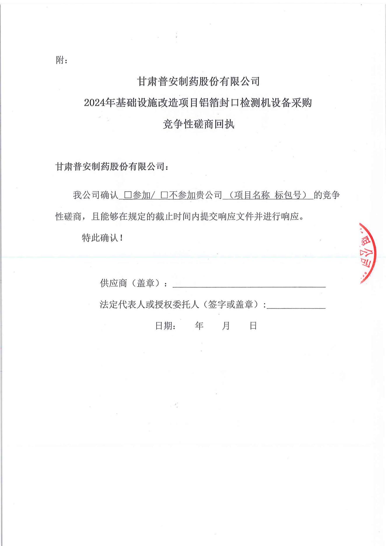 甘肅普安制藥股份有限公司2024年基礎設施改造項目鋁封口檢測機設備采購競爭性磋商公告